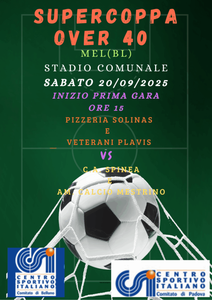 Sabato 20 Settembre presso lo Stadio Comunale di Mel (BL) con inizio alle 16.00 ci sarà la Supercoppa CSI 2025 Ober 40.