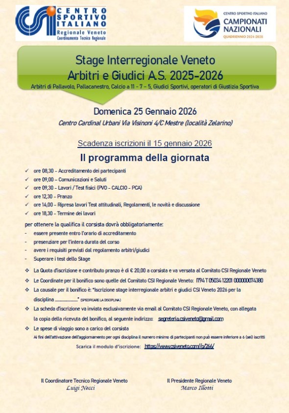STAGE INTERREGIONALE VENETO ARBITRI E GIUDICI 2026
