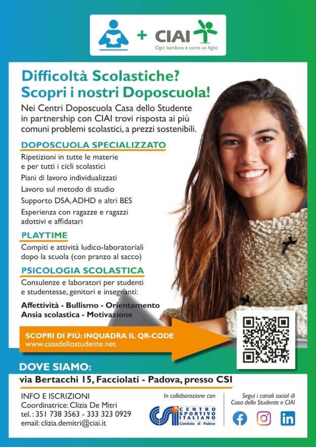 Nei centri doposcuola Casa Dello Studente in partnership con CIAI trovi risposta ai più comuni problemi scolastici, a prezzi sostenibili. Doposcuola specializzato Ripetizioni in tutte le materie e per tutti…