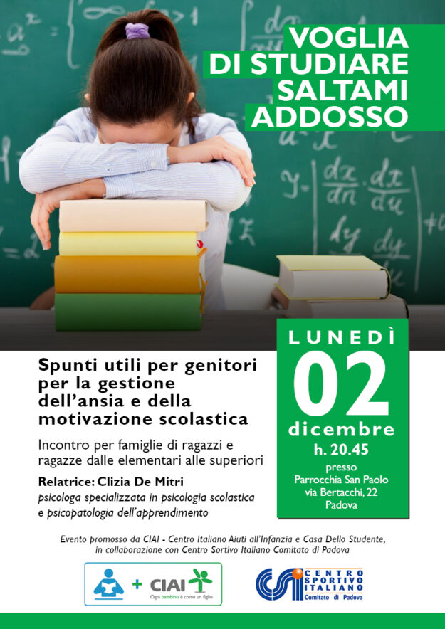 Voglia di studiare saltami addosso Spunti utili per genitori per la gestione dell’ansia e della motivazione scolastica L’incontro di svolgerà: LUNEDI 2 DICEMBRE ore 20:45 presso la Parrocchia San Paolo…